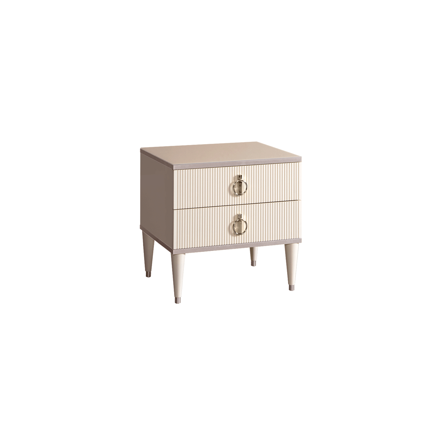 Тумба прикроватная KULT бежевого цвета в коже круглая с ящиками